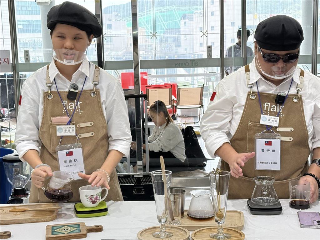 在緊張的 15 分鐘競賽過程中,咖啡師精準完成兩杯手沖與兩杯創意咖啡。賽後,國際評審團對咖啡的風味層次感到無比驚艷,甚至主動索取咖啡豆希望再次品嚐。這份來自專業領域的最高認可,證明了「障礙」從未限制住對卓越的追求。